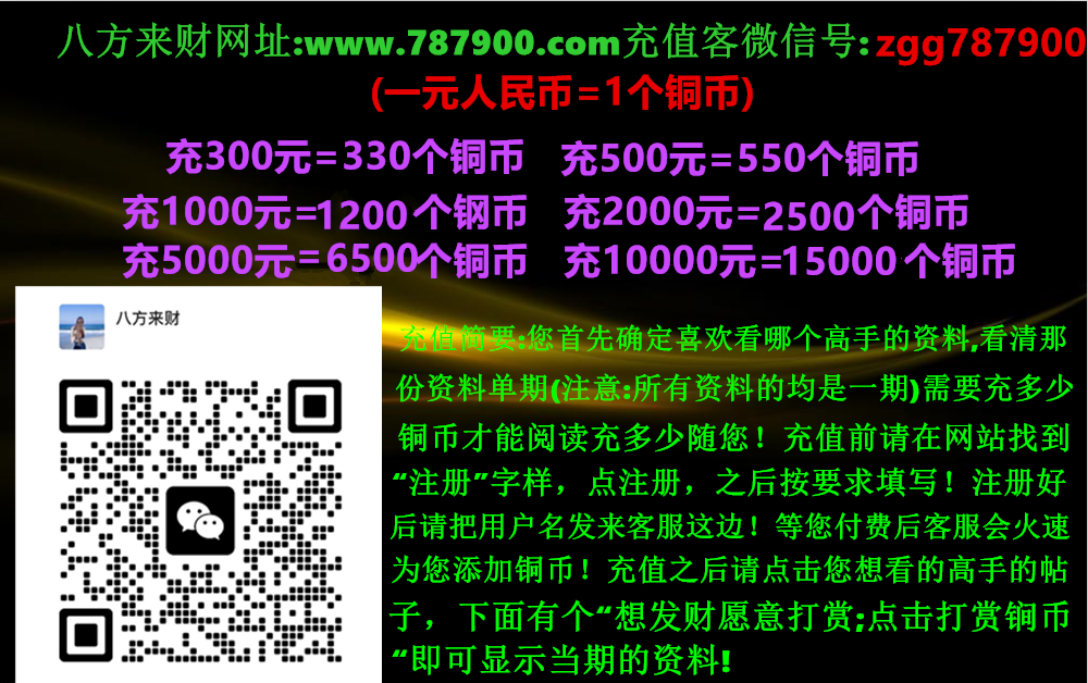 独家发表,本站要求所有高手必须在晚上18点至21点上传充值客户所打赏的资料,如超过21点仍未上传,请已打赏该贴的客户联系充值客服!哪个高手敢改料请联系客服,将严惩改料骗子行为!本站绝不做那种二次或多次收费的狗杂种的事!资料无100%期期中,对错勿迁怒任何人!需打赏才能看的资料连错三期下架!